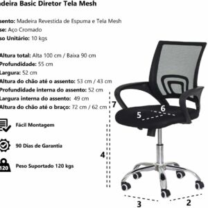- • Assento com estrutura em madeira , estofado e revestido em tela mesh cor Preto;